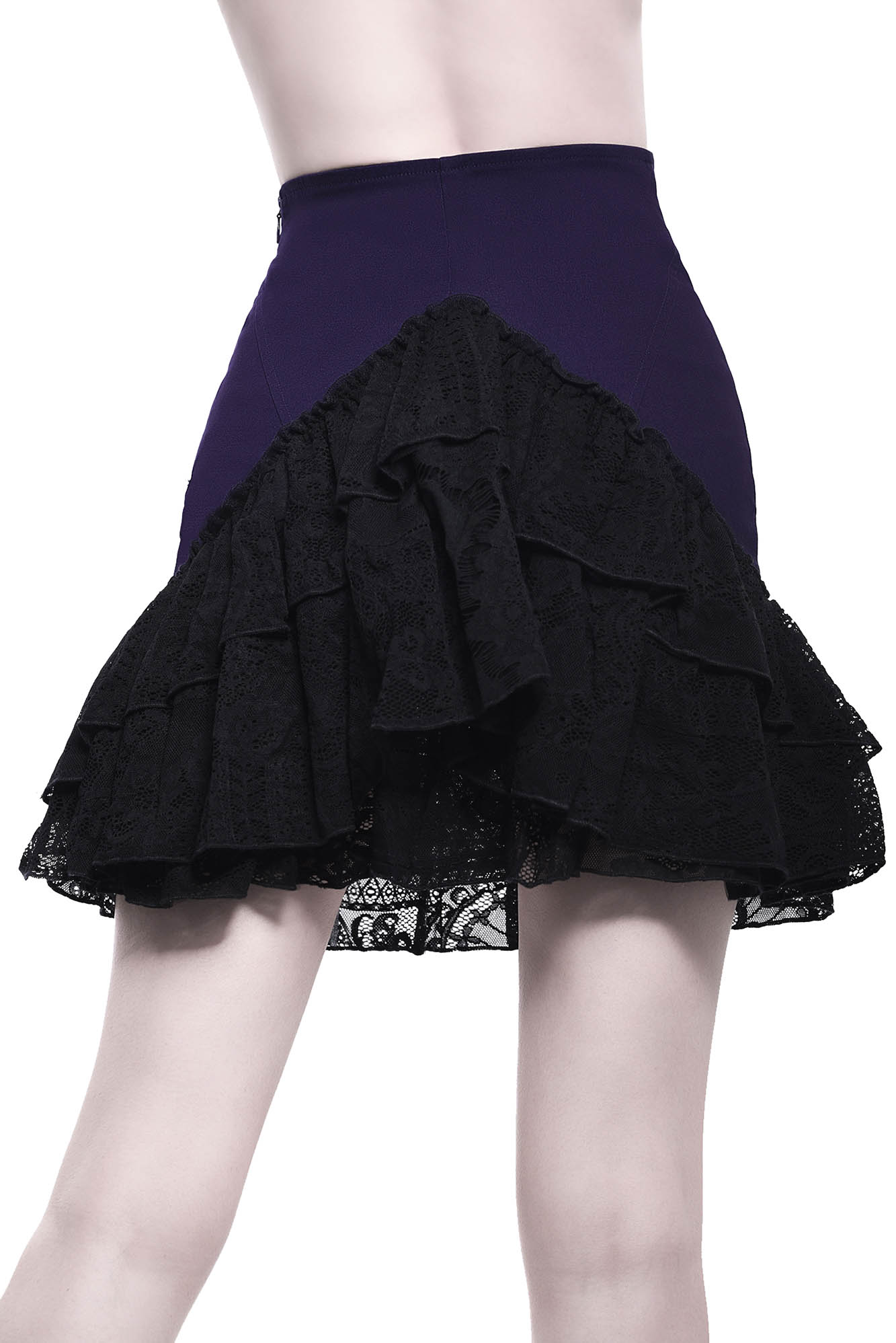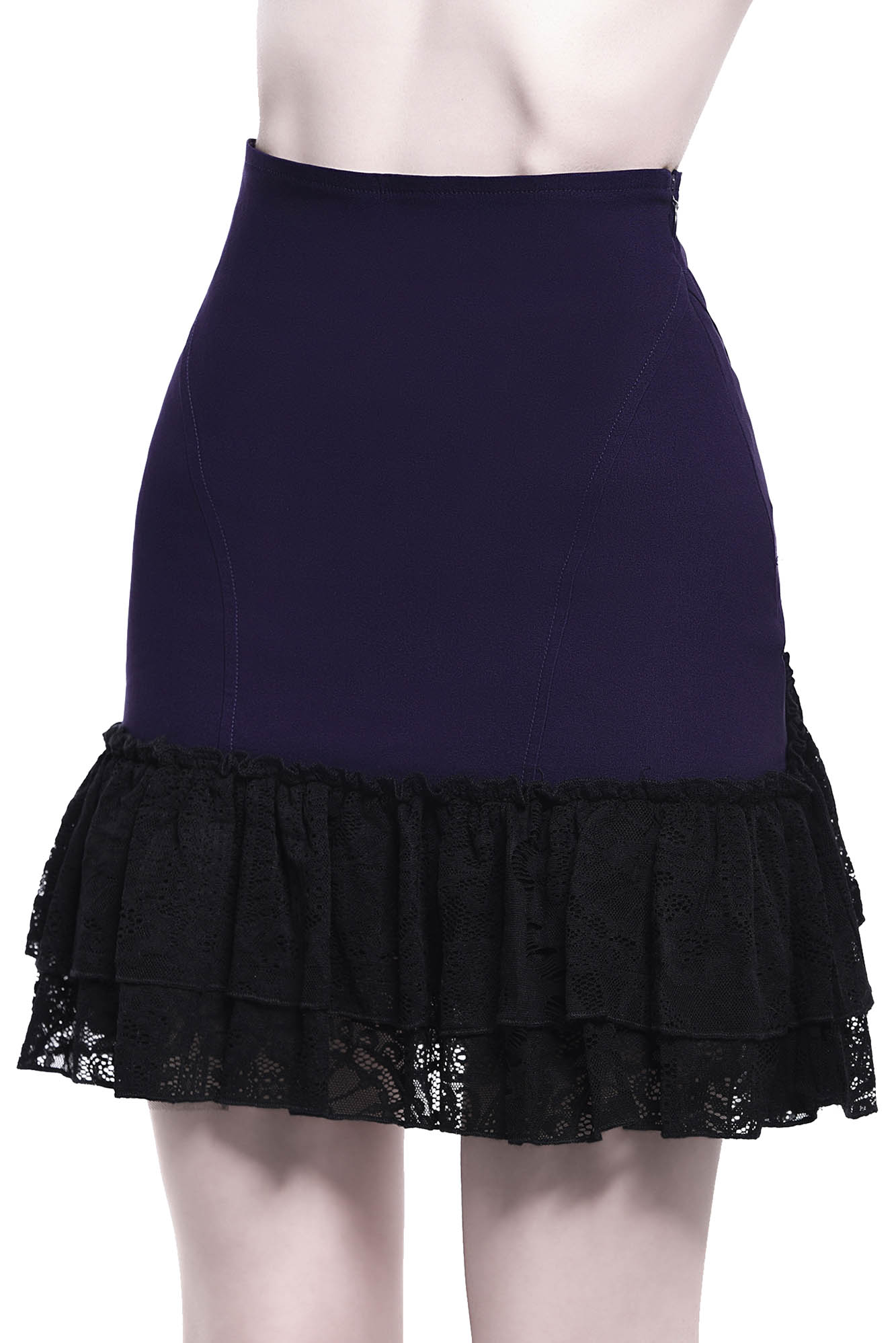 Join me on the adventures into the dark; the 'Adoria' statement skirt is everything you need to swoon. Featuring a woven-stretch fabric body for a flattering fit combined with superior comfort. With a lace ruffle & bustle statement, delicate trims and zipped back for easy on/off. Easy to style and oh-so-versatile - perfect from dusk to dawn.