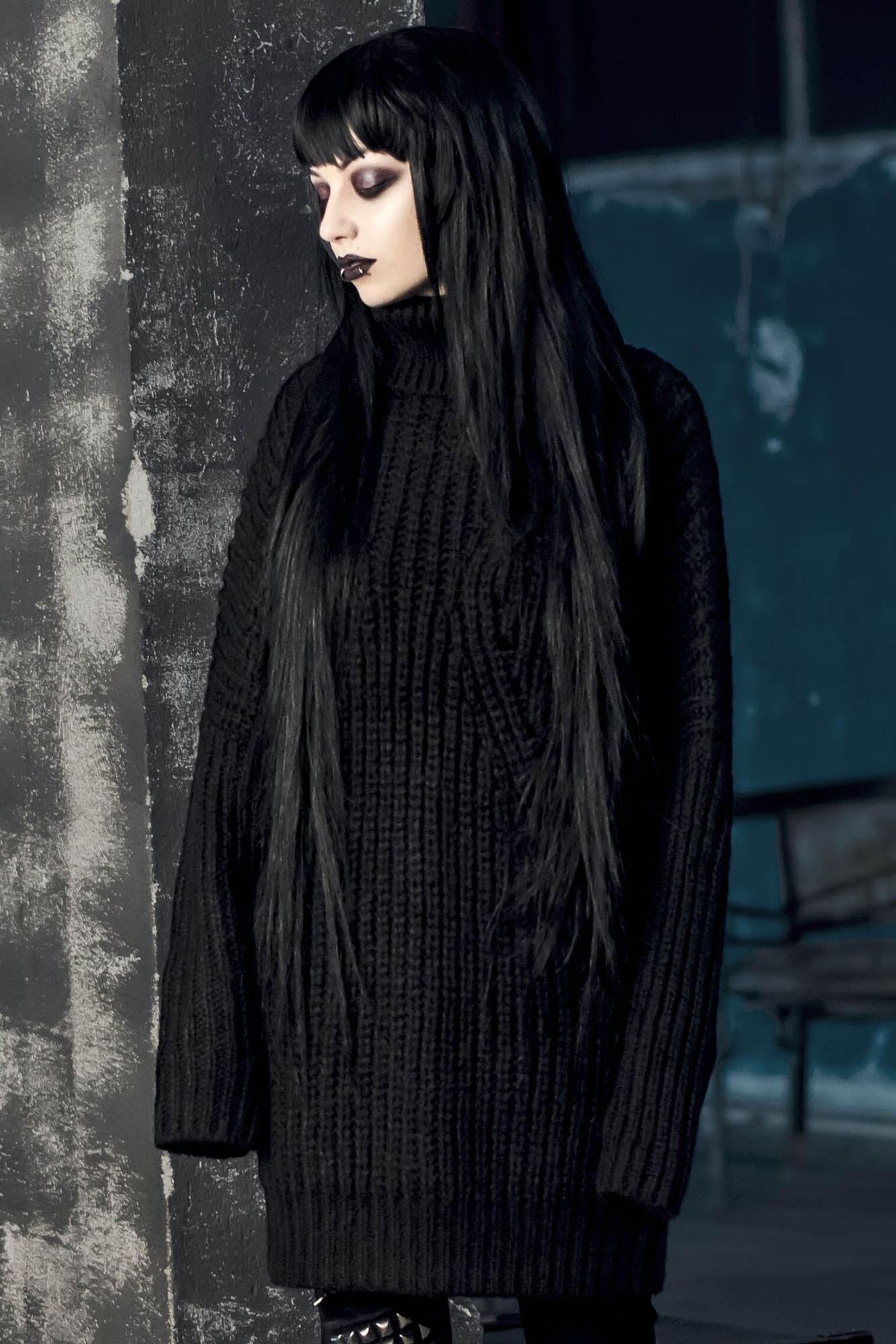 Are u ready to get real cozy with your dark side? The 'Aeon' knit sweater is perfect for chill/adventures/cold days/whatever. Super-soft and chunky knit with a high turtleneck and extra long-length so can easily be dressed up or down depending on yer moon/mood.