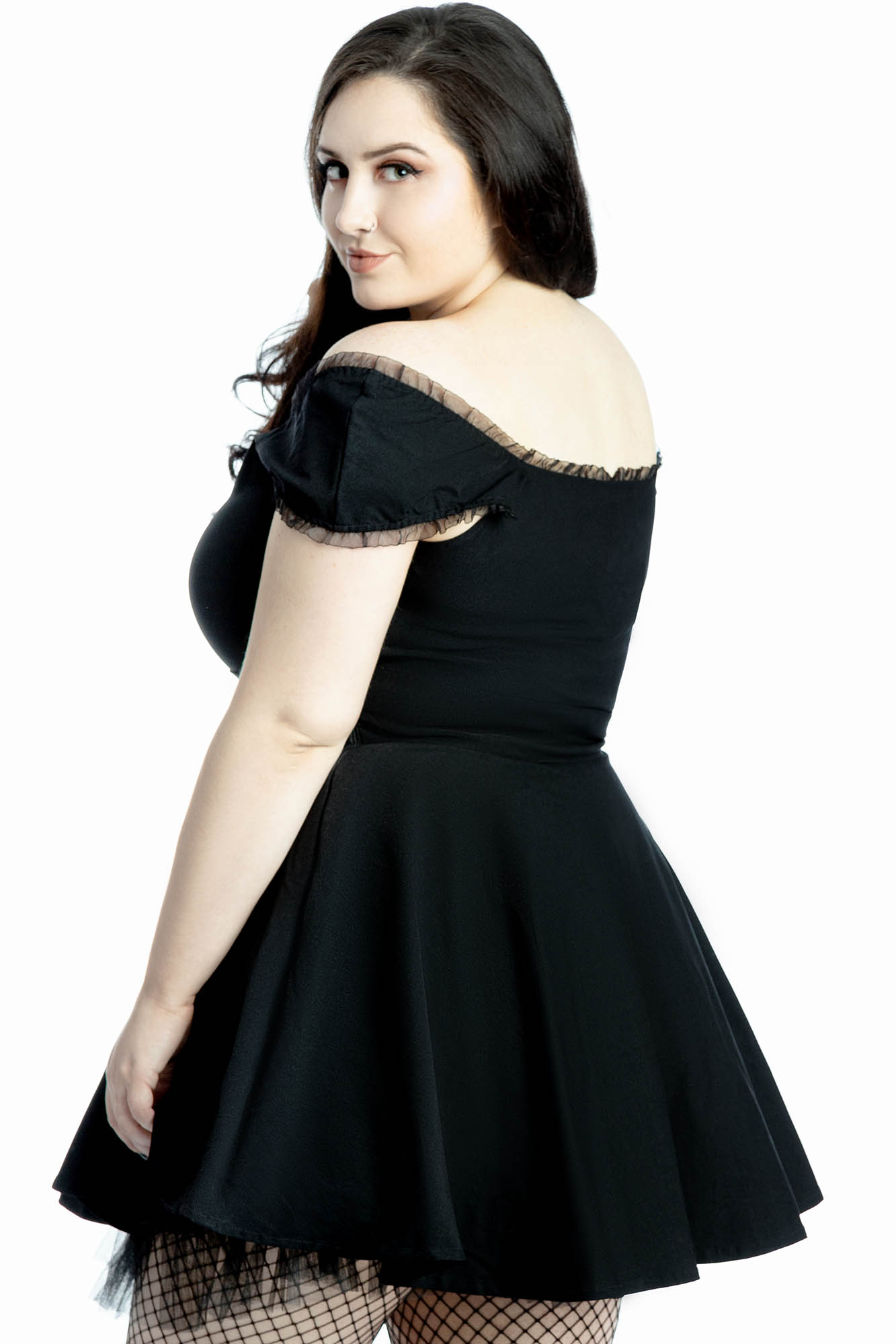 Put the fun in fun-eral with the 'Aisling' party dress. Channeling a vintage vibe with its figure-hugging fit, constructed of woven stretch fabric for ultimate feel + comfort. With a low neckline, delicate lace trims, decorative buttons and generously flared skirt with tulle. Fits like a glove - purrfect for date night, parties or just yer daily/nightly adventures.