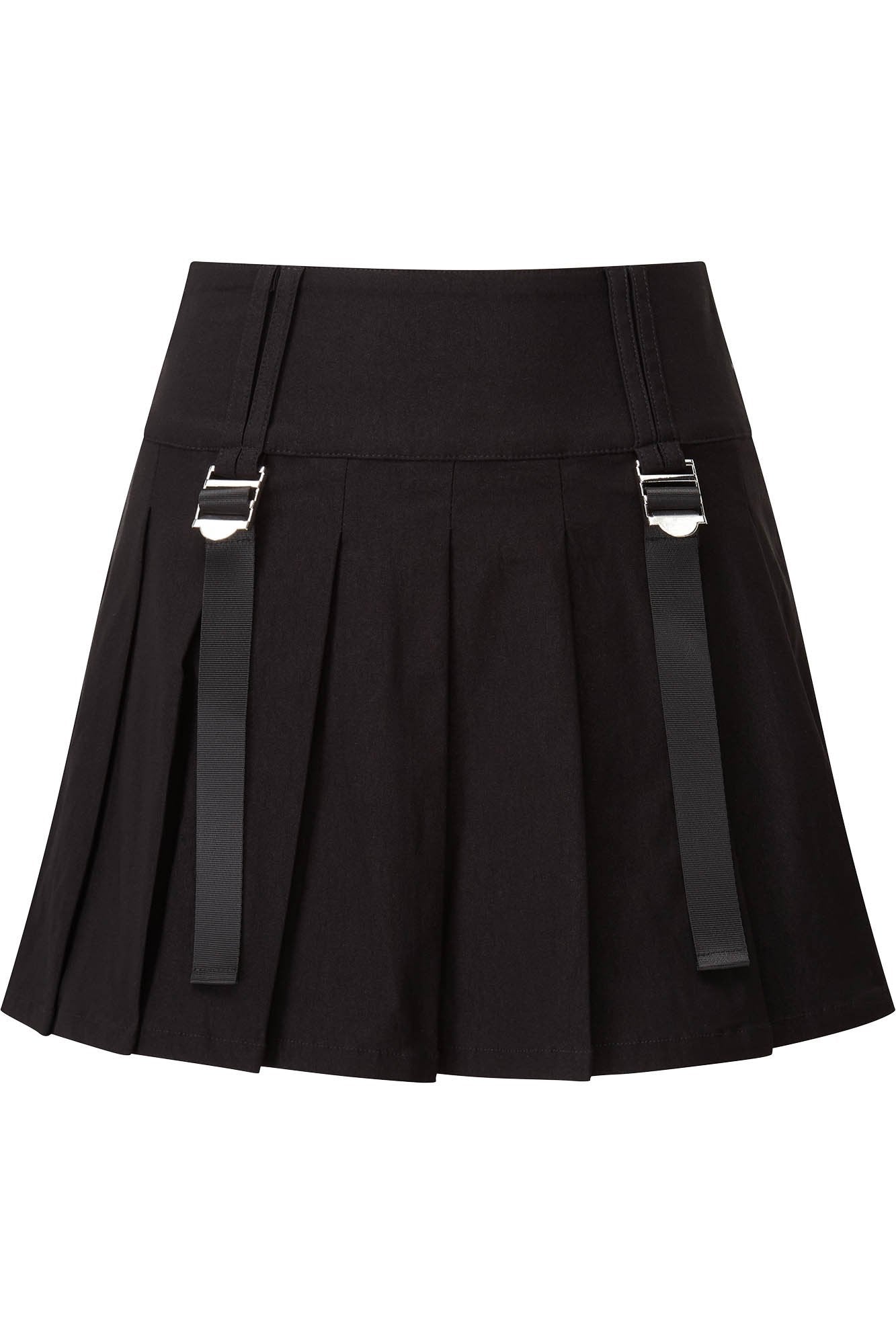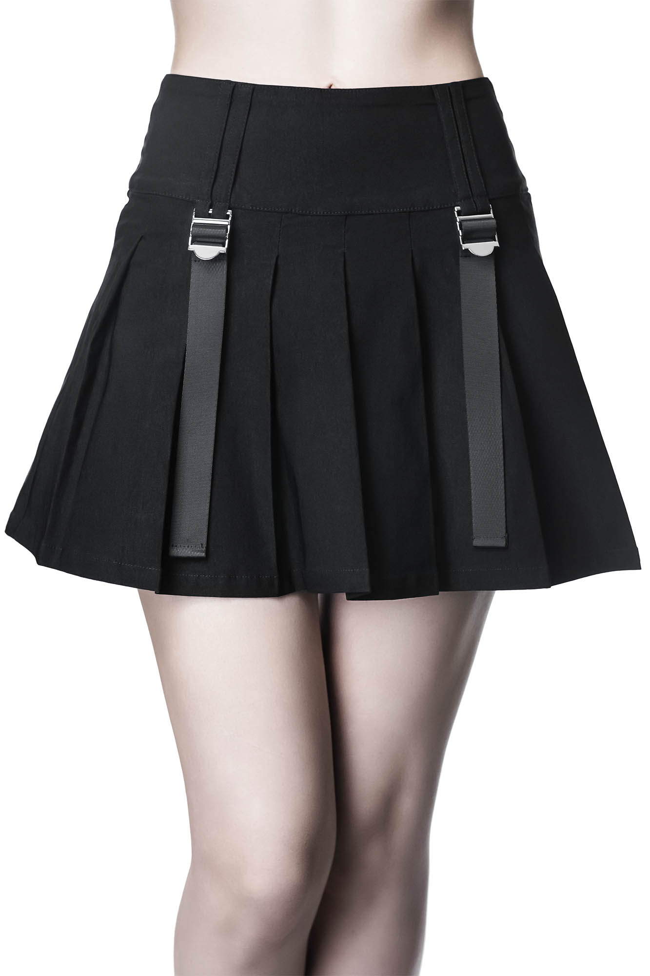 Following the North Star to the moon-gate? The 'Analog' mini skirt is yer perfect [and super versatile] must-have wardrobe staple; constructed of super stretch woven-fabric for a flattering fit! Complete with a pleated body, statement buckles and straps - zipped to the back for easy on/off. Easy to dress up or down depending on your mood/moon.