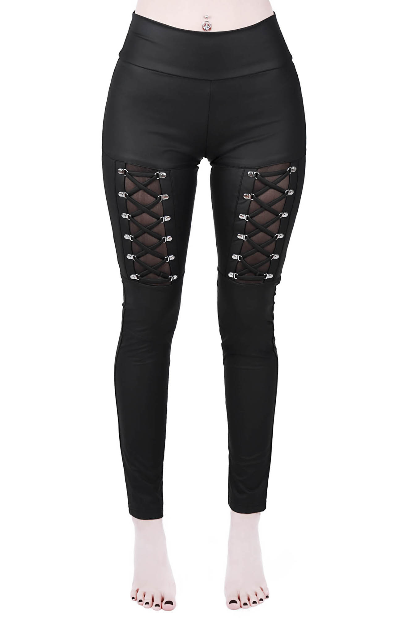 A life without leggings would be boring; the 'Astoria' leggings exude power and control with its slick-fit and modern metal-warrior vibe. Super soft and stretch 'leather' fabric - with statement corset panels to each leg with mesh background and classic wide waistband. A must-have statement piece that takes your outfit to the next level.