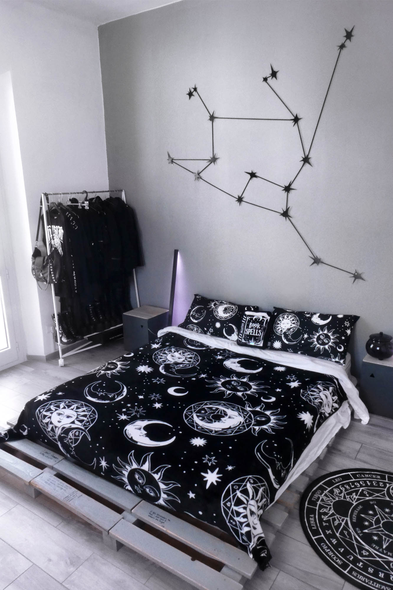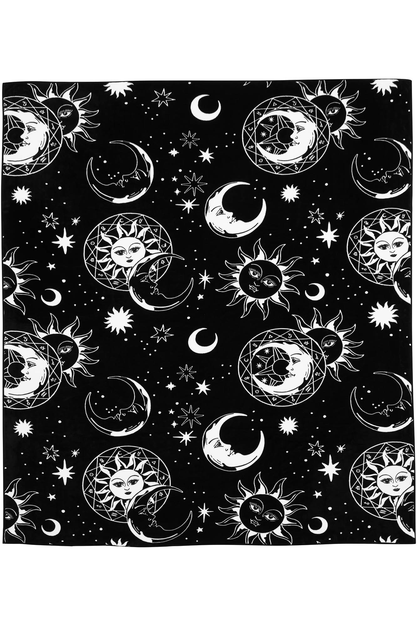 You have the universe inside of you. Add some serious cosmic vibes to yer crypt with the 'Astral Light' blanket - extra large size with contrasting Moon + Sun graphic, perfect for your crypt, bed-cover or just midnight chill on the couch.